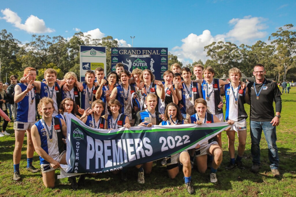 Our 20 point gap remained by 3 quarter time. Last quarter of footy, crucial that the boys keep their feet, and focus on the footy. Despite the surroundings of the crowd, the momentum and the feeling that was going to evolve in the last 20 mins fo match play, the boys stayed cool, calm and collected. Showed great composure and even better discipline. 5 goals were kicked in the last quarter by the Burras to Kinglake’s 1. The final siren sounded and we were PREMIERS. 5.8-38 to 12.10-82 was the final score with Bailey Humphrey kicking 3 goals, Luke Anderson securing 2 as well as Aspen O’Neill. Patrick Huynh, Angus McDonald, Hudson Semple, Josh Sharp, Dylan Walker all contributed 1 goal each.